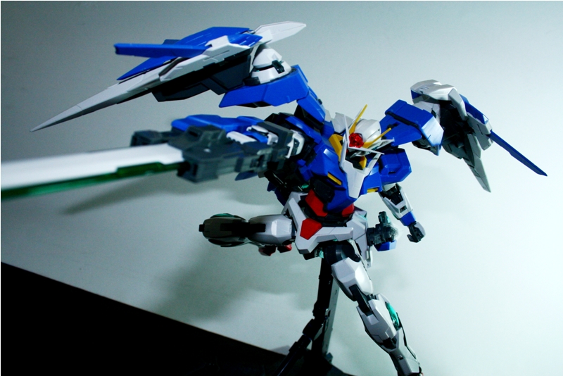 Overall for this kit is great actually. Without any major modification it will still look great but it still have a lot of potential for this kit to be the base kit for kit bashing such as combining OO gundam with O Raiser, XN raiser, Seven Sword parts and also GN Sword 5. Additional detail adding to the outer armor as well as armor trimming to show off the inner frame also will do for the modification from this kit.